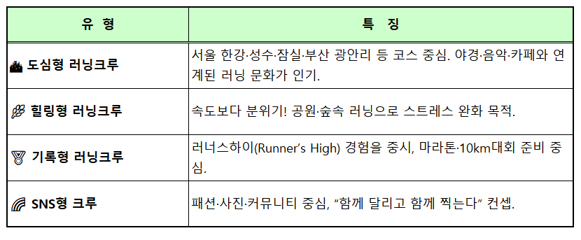 - 📲 온라인에서 검색: 인스타그램에서 #러닝크루, #런스타그램 등의 해시태그로 다양한 크루의 정보를 쉽게 찾을 수 있습니다.
