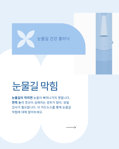 특히 눈물길 막힘은 한쪽 눈에만 발생하는 경우가 많아 반드시 진료가 필요합니다.