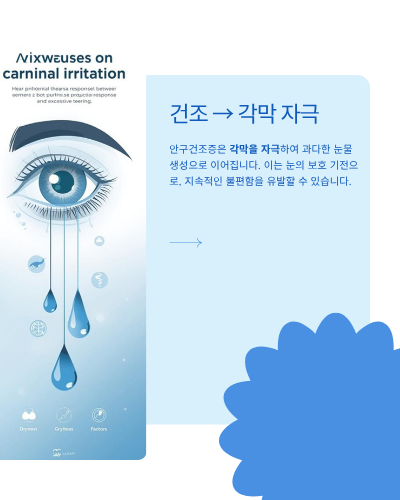 눈물이 많아지는 가장 흔한 원인은 역설적이게도 안구건조증입니다.