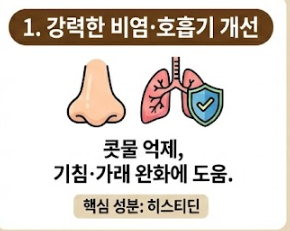 | 히스티딘 | 비염 증상 완화, 영유아 성장 발달 필수 |