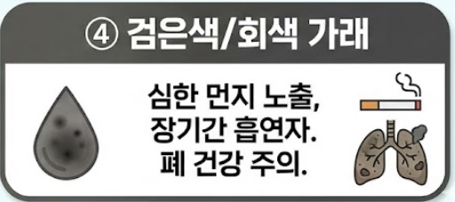 🚨 검은색: 심한 먼지 노출 혹은 장기간 흡연자.
