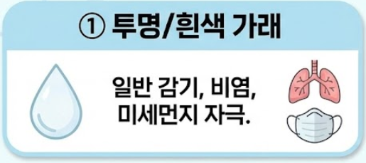 🚨 하얀색/투명한 색: 일반적인 감기, 비염, 미세먼지 자극