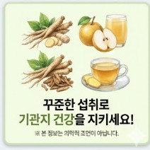 - 생강: 몸을 따뜻하게 하고 혈액순환을 도우며, 강력한 살균 작용으로 기관지 염증을 가라앉힙니다.