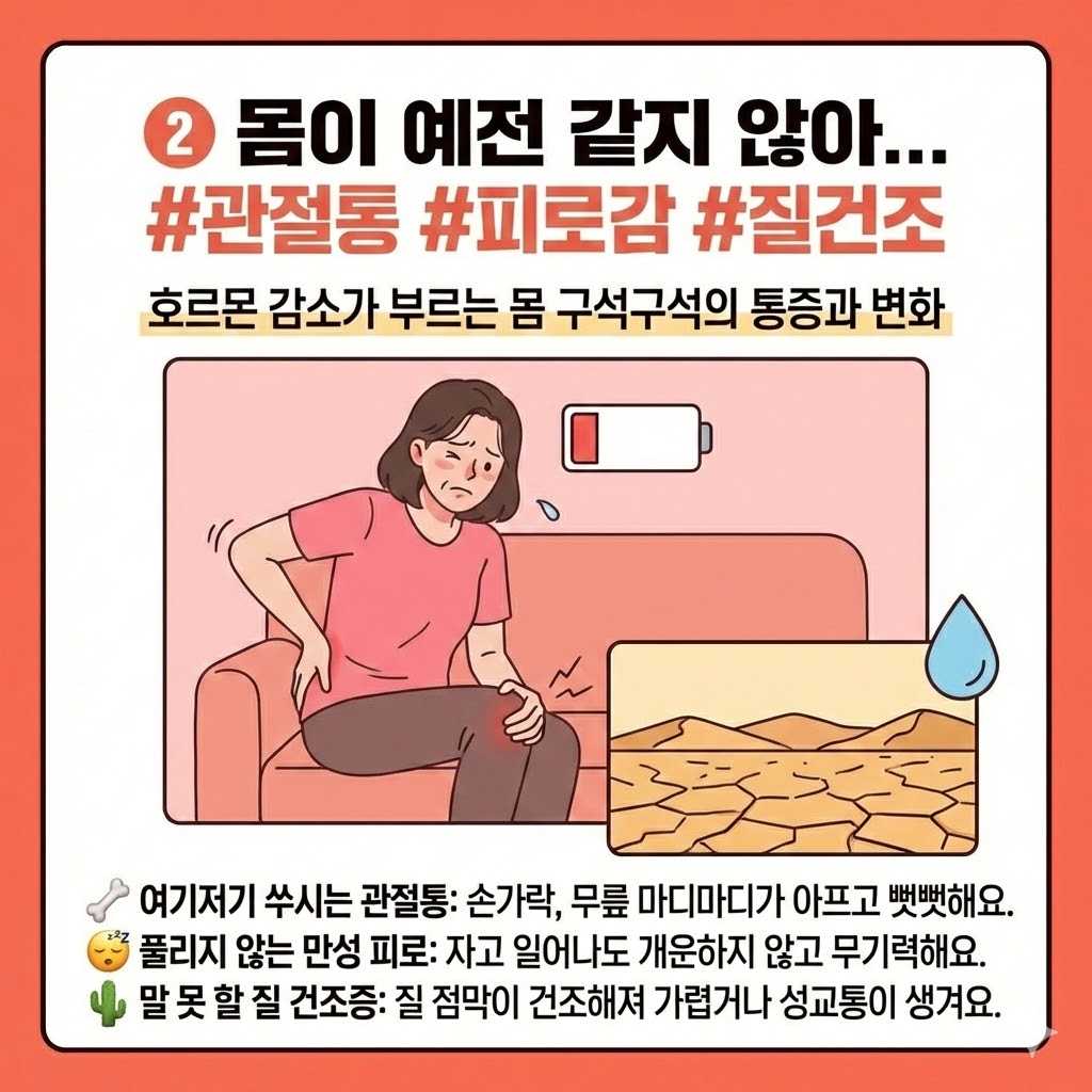 어느 날부터인가 얼굴이 이유 없이 화끈거리고, 밤에 잠을 설치거나 사소한 일에도 짜증이 치밀어 오르는 경험, 혹시 있으신가요? 단순히 피로 탓이라고 넘기기엔 몸의 변화가 뚜렷하다면, 우리 몸이 보내는 신호인 '갱년기'를 의심해봐야 합니다.