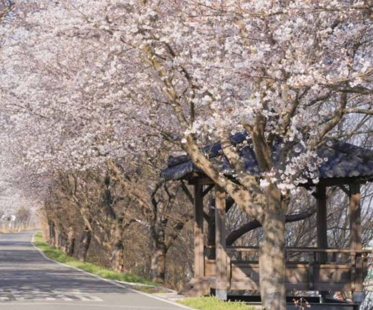- 감상 포인트: 이곳의 벚나무들은 가지가 도로 중앙으로 길게 뻗어 있어, 차를 타고 달리면 마치 거대한 꽃 동굴 속으로 빨려 들어가는 듯한 황홀한 착각을 불러일으킵니다. 잔잔한 구천저수지 수면 위로 벚꽃잎이 떨어지는 풍경은 한 폭의 수채화 같습니다.