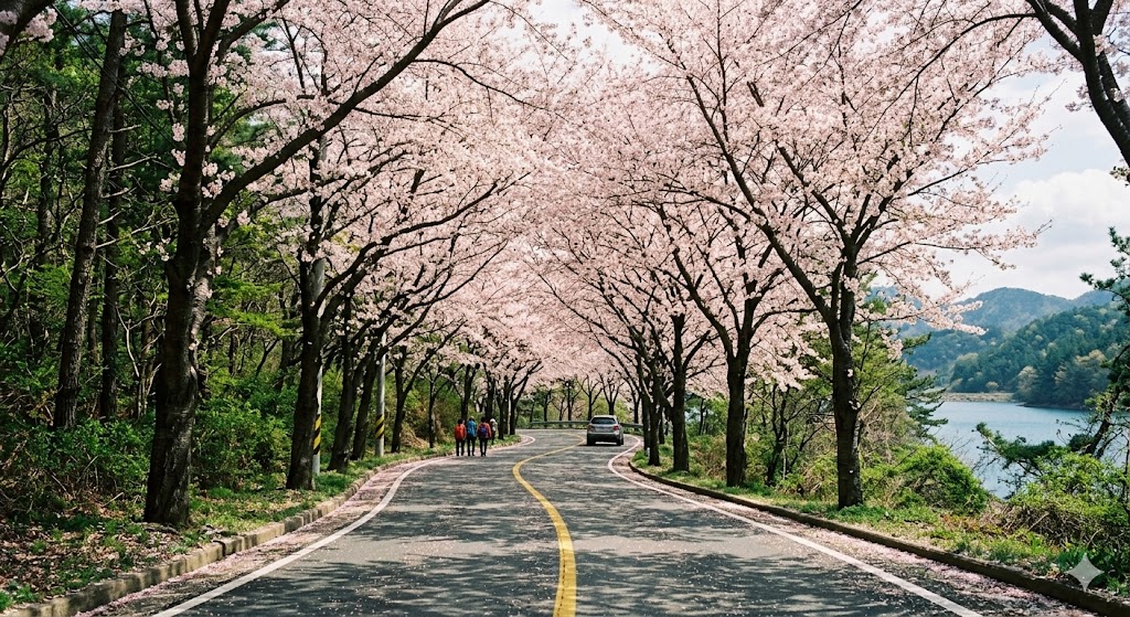 - 현지인 방문 꿀팁: 주말 낮 시간대에는 차량이 길게 늘어서 거대한 주차장을 방불케 합니다. 인생샷을 남기고 싶으시다면 과감하게 이른 아침(오전 8시 이전)이나 해가 질 무렵인 오후 5시 이후에 방문하세요. 붉은 노을빛에 물든 분홍빛 벚꽃은 또 다른 몽환적인 분위기를 자아냅니다.