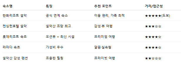 온천 여행은 숙소 선택이 전체 여행 만족도를 좌우하는 핵심 요소입니다. 설악 워터피아 주변 숙소는 아래 3가지 그룹으로 나눌 수 있습니다.