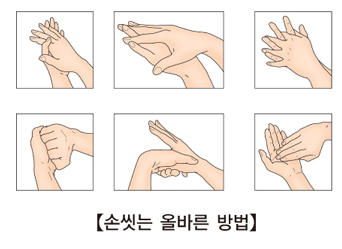 | 손 씻기 | 비누와 흐르는 물 30초 | 동일 |