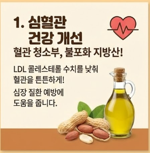 땅콩버터의 지방은 대부분 올리브유와 같은 불포화 지방산(올레산)입니다. 이는 혈관에 쌓인 나쁜 콜레스테롤(LDL) 수치를 낮추고 혈관을 튼튼하게 만들어 심혈관 질환 예방에 도움을 줍니다.