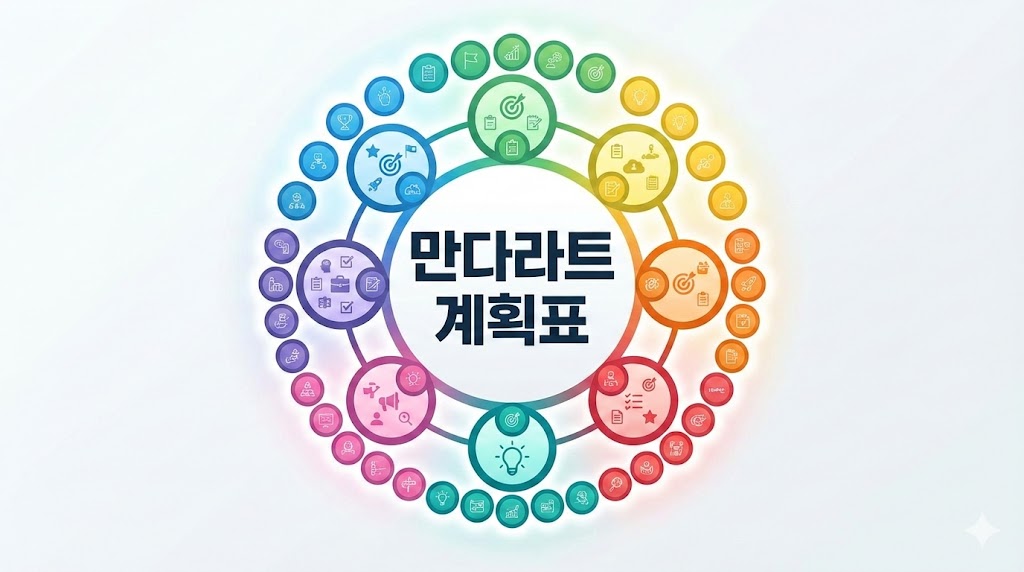 여러분도 오늘, 종이 한 장을 꺼내 여러분만의 우주(Mandala)를 그려보는 건 어떨까요? 칸을 하나하나 채워가다 보면 막연했던 두려움은 사라지고, 당장 오늘 해야 할 설레는 일들이 눈앞에 펼쳐질 것입니다.