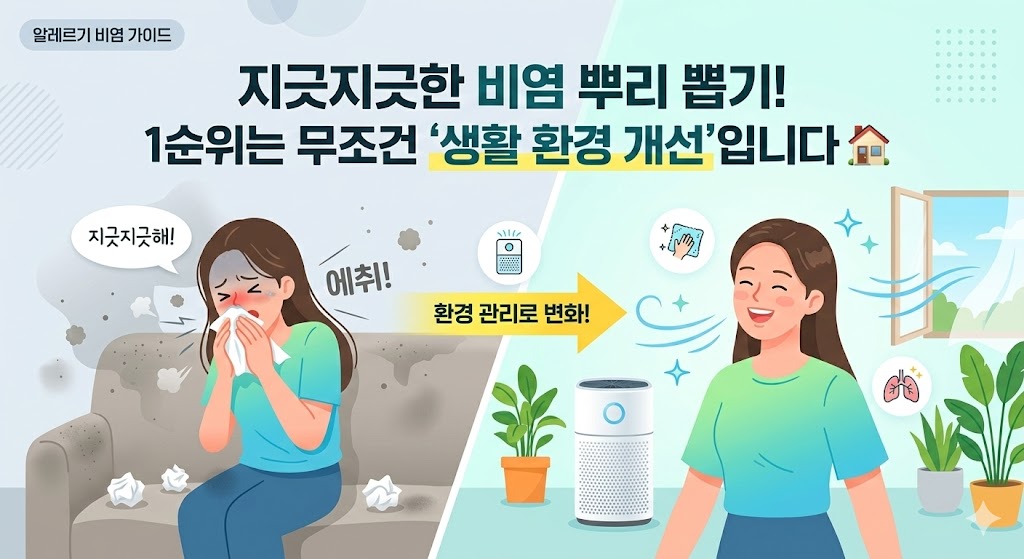 지금까지 '비염 뿌리를 뽑으려면' 어떻게 접근하고 관리해야 하는지 종합적으로 알아보았습니다. 비염은 단기간에 마법처럼 사라지는 질환이 아닙니다. 하지만 1) 적절한 실내 온습도와 청결한 환경 유지, 2) 올바른 코 세척의 생활화, 3) 염증을 줄이는 식습관 개선, 4) 필요시 전문적인 면역치료 병행이라는 네 가지 기둥을 꾸준히 실천한다면 분명 지긋지긋한 증상에서 벗어나 상쾌한 숨을 쉴 수 있을 것입니다. 오늘부터 침구류 세탁이나 물 많이 마시기 같은 작은 것부터 하나씩 실천해 보시길 응원합니다!
