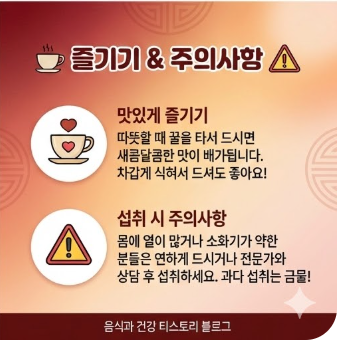 4. 기호에 따라 꿀을 약간 타서 드시면 새콤달콤한 맛을 즐기실 수 있습니다.