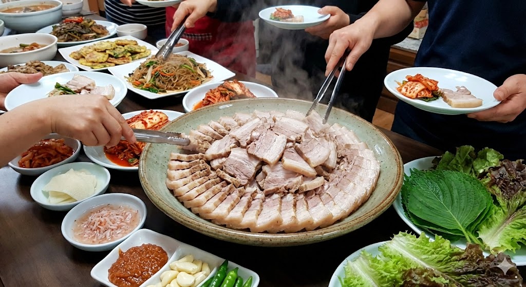 * Tip: 수육은 큰 냄비에 한 번에 삶아내기만 하면 되므로 대가족 손님맞이에 가장 훌륭한 메뉴입니다. 저녁에는 남은 나물을 활용해 양푼에 비빔밥을 비벼 먹으면 설거지 거리도 줄고 맛도 좋습니다.