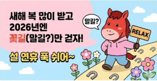 • 🌸 "새해 복 많이 받고 2026년엔 꽃길(말길?)만 걷자! 설 연휴 푹 쉬어~"