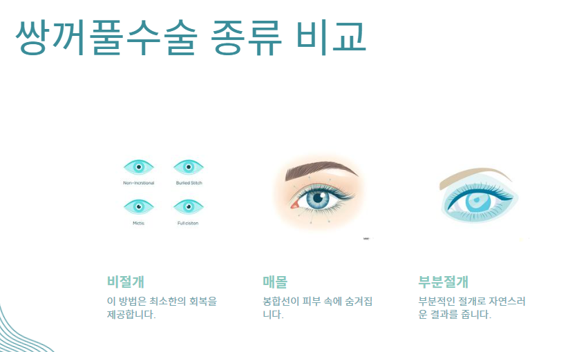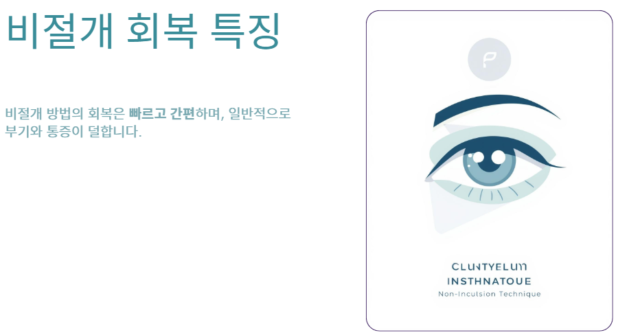 - 단점: 눈꺼풀 지방이 많거나 피부가 두꺼운 경우 적합하지 않음
