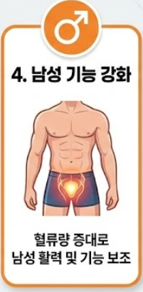 음경 해면체 내의 혈류량을 증대시키는 효과가 있어 발기 부전 보조 요법으로 활용되기도 합니다. 남성 활력제의 대표 성분으로 쓰이는 이유입니다.