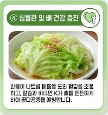 뼈 형성에 필수적인 칼슘은 물론, 칼슘이 뼈에 잘 흡수되고 저장되도록 돕는 비타민 K가 함께 들어있어 뼈 건강을 챙기기에도 훌륭한 식품입니다.