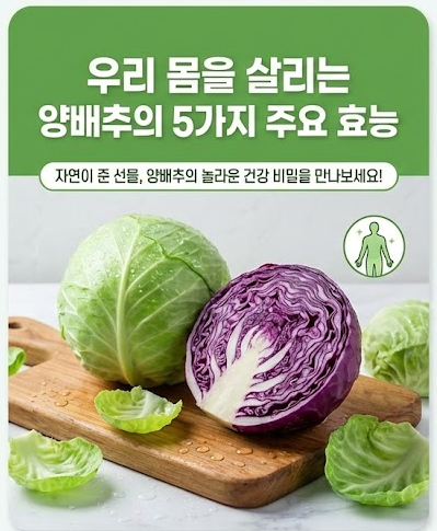 쉽게 구할 수 있어 자칫 그 가치를 간과하기 쉬운 양배추. 하지만 알고 보면 현대인의 지친 위장과 건강을 달래주는 작지만 강력한 보약과도 같습니다. 오늘 저녁 식탁에는 아삭하고 달달한 양배추 쌈이나 상큼한 샐러드를 올려보시는 건 어떨까요? 꾸준한 섭취로 가벼운 속과 튼튼한 건강을 모두 챙기시길 바랍니다.