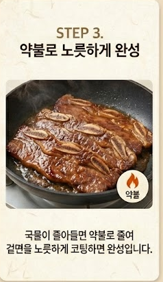 - 굽는 법: 팬을 예열한 뒤 고기를 올리고, 양념 국물을 한국자 정도 같이 부어주세요. 물이 졸아들면서 고기가 찌듯이 익혀져야 속까지 익고 타지 않습니다. 국물이 거의 사라지면 약불로 줄여 겉면을 노릇하게 코팅해 줍니다.