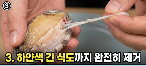 전복의 입 부분에는 딱딱한 이빨과 식도가 있습니다. 이를 제거하지 않으면 먹을 때 딱딱한 이물감이 느껴지고 위생적으로도 좋지 않습니다.
