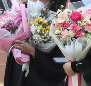 마지막 졸업식인 만큼, 학사모를 던지는 컷을 위해 대형 꽃다발을 선호하거나, 아예 본인의 취향이 반영된 커스텀 꽃다발(특정 색감 지정)을 원합니다. 대학생 자녀나 친구에게는 미리 좋아하는 꽃이나 색상을 물어보는 것도 실례가 아닙니다.