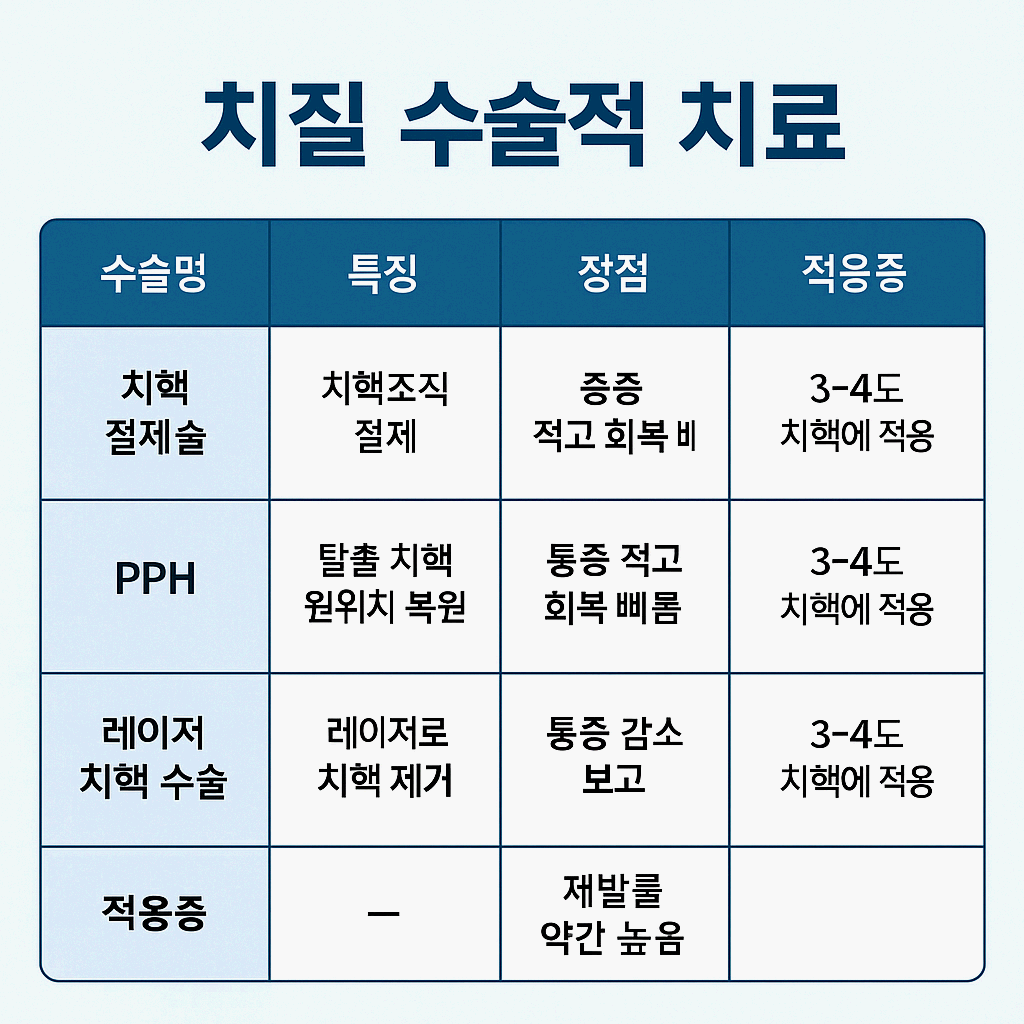 - 치핵 절제술(Hemorrhoidectomy) – 가장 효과 확실