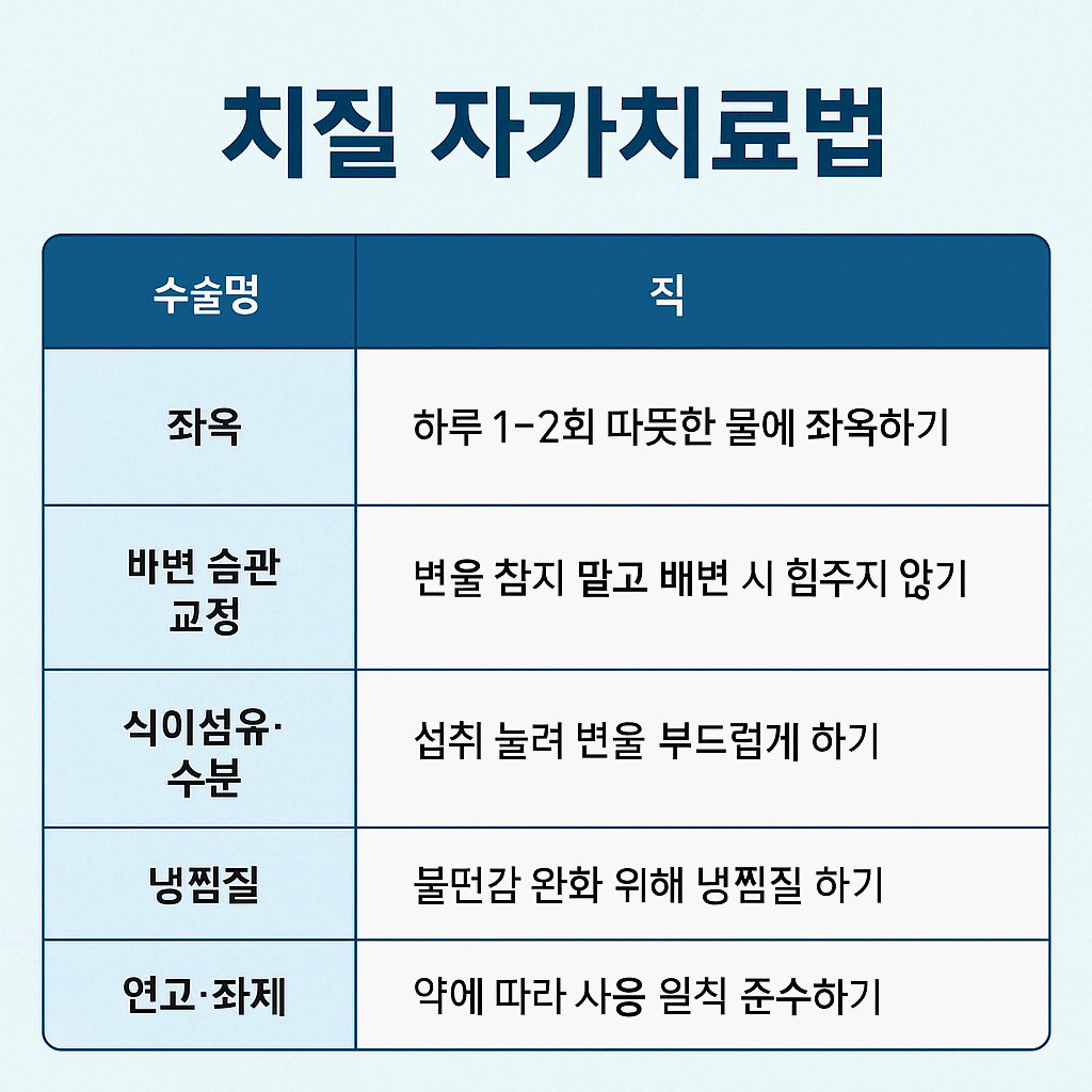 - 따뜻한 좌욕(10~15분 × 2~3회)