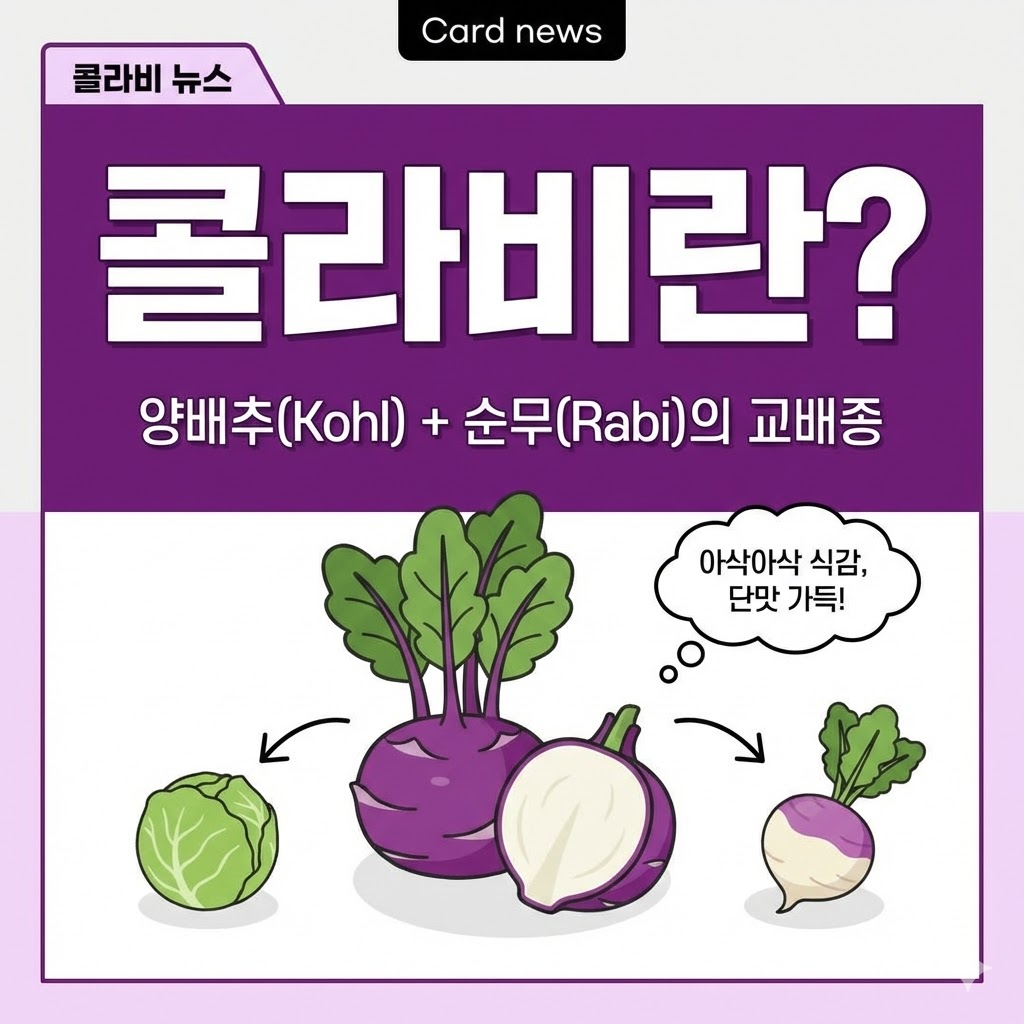 마트 신선 코너에 가면 보랏빛이 도는 둥근 채소를 자주 보셨을 겁니다. 바로 양배추(Kohl)와 순무(Rabic)의 교배종인 '콜라비(Kohlrabi)'입니다. 아삭한 식감과 높은 당도 덕분에 과일처럼 깎아 드시는 분들도 많은데요.