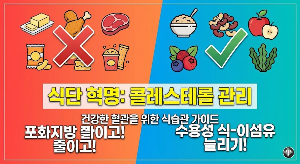 콜레스테롤 관리의 8할은 식단입니다. 무조건 굶거나 고기를 끊는 것이 정답이 아닙니다. 핵심은 '종류'를 바꾸는 것입니다.