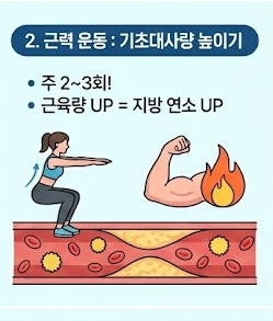 식단만으로는 HDL(좋은) 콜레스테롤을 높이는 데 한계가 있습니다. 운동은 LDL을 낮추고 HDL을 높이는 가장 확실한 방법입니다.