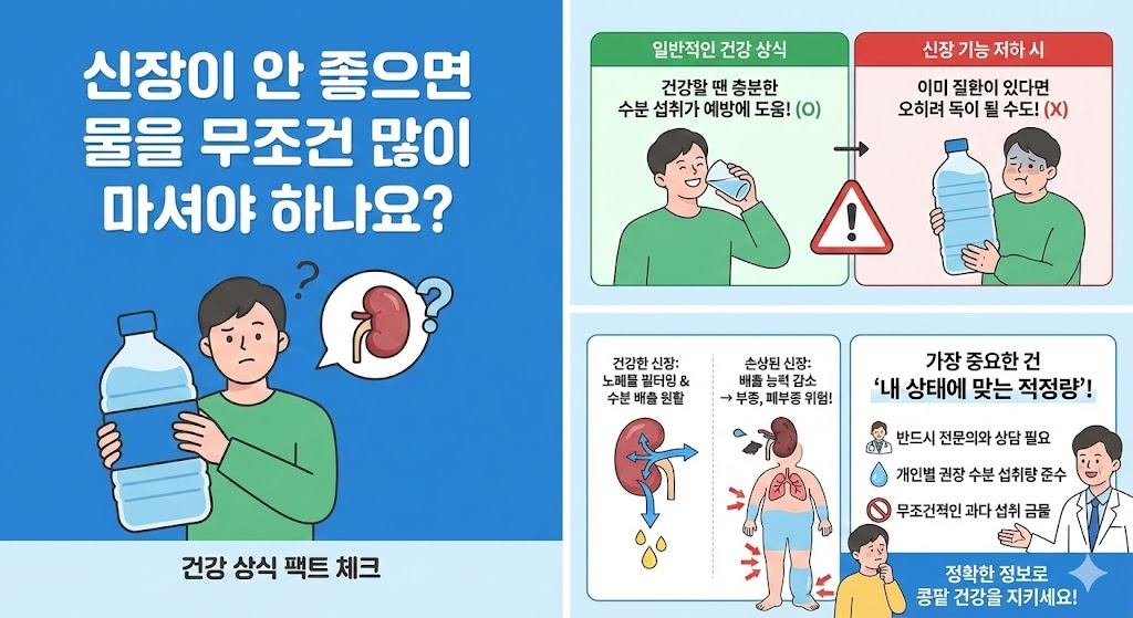 Q1. 신장이 안 좋으면 물을 무조건 많이 마셔야 하나요?