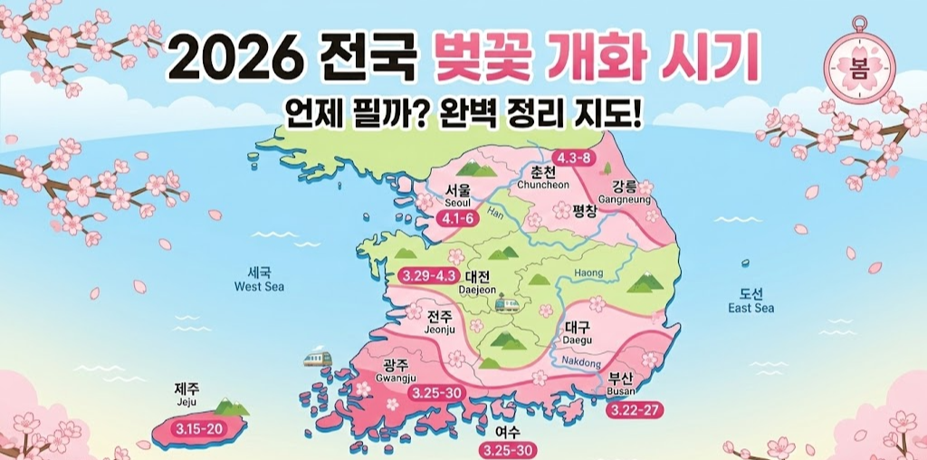 오늘은 단순한 경험이나 직감이 아닌, 기상 데이터와 식물 생리학을 바탕으로 한 벚꽃 개화시기 추정 법칙을 알기 쉽게 살펴보고, 가장 최신 데이터인 산림청 및 기상청 자료를 토대로 분석한 2026년 전국 지역별 벚꽃 개화 시기와 만개 시기까지 완벽하게 정리해 드리겠습니다. 이 글 하나만 끝까지 읽어보시면 올해 봄꽃 나들이 계획은 실패 없이 성공하실 수 있을 것입니다.